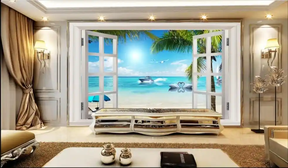 Custom Photo Mural 3d Wallpaper Yacht Swan Outside The Window