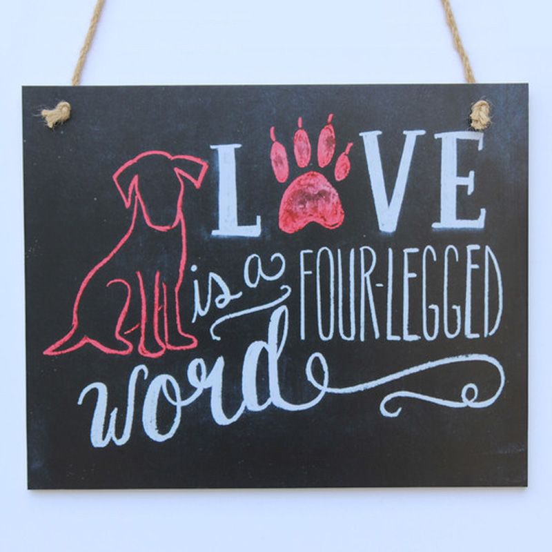 Chalkboard Sign Love Is A Four Legged With Red Dog Word Chalk Sign