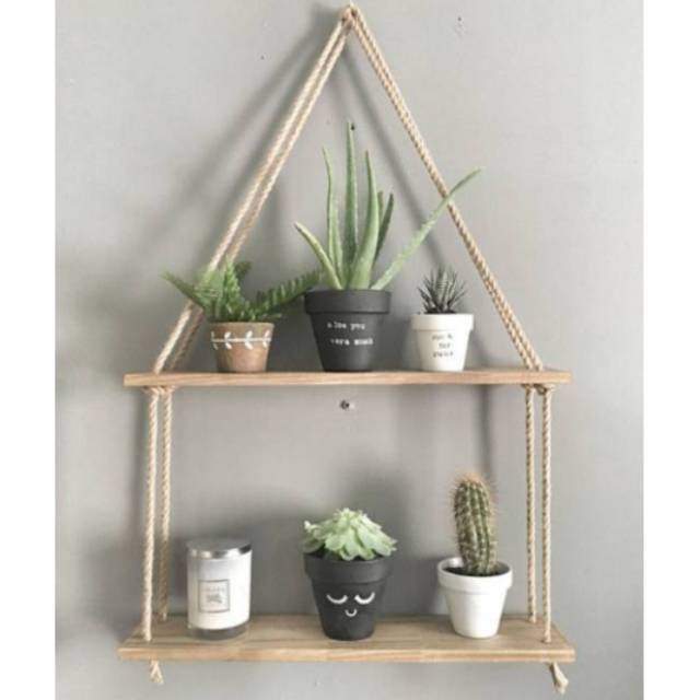 Hanging Wall Shelf Wood Swing Storage Shelves Jute Rope