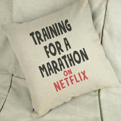 Training For A Marathon On Netflix Cushion Cover Linen White 40cm