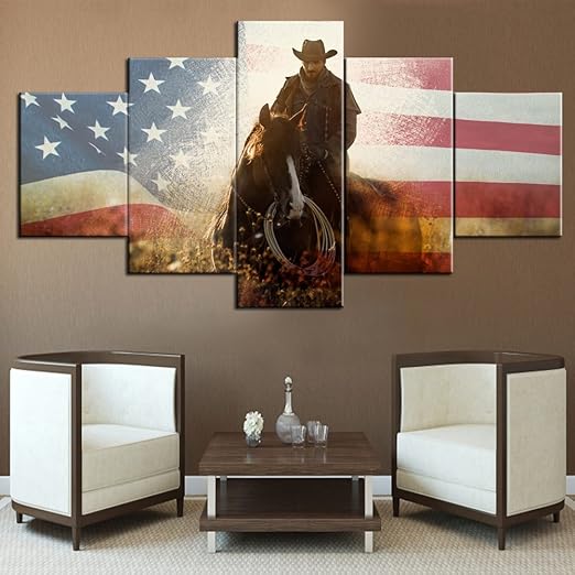 Amazon Com Horse Painting Native American Cowboys Decor Usa Flag