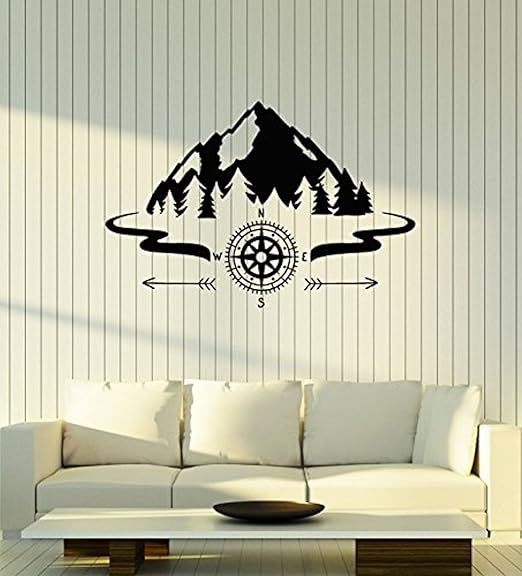 Amazing Home Decor Large Vinyl Wall Decal Mountains Compass