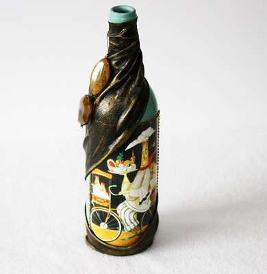 Kitchen Home Decor Green Gold Bottle Art Decorated Wine Bottle