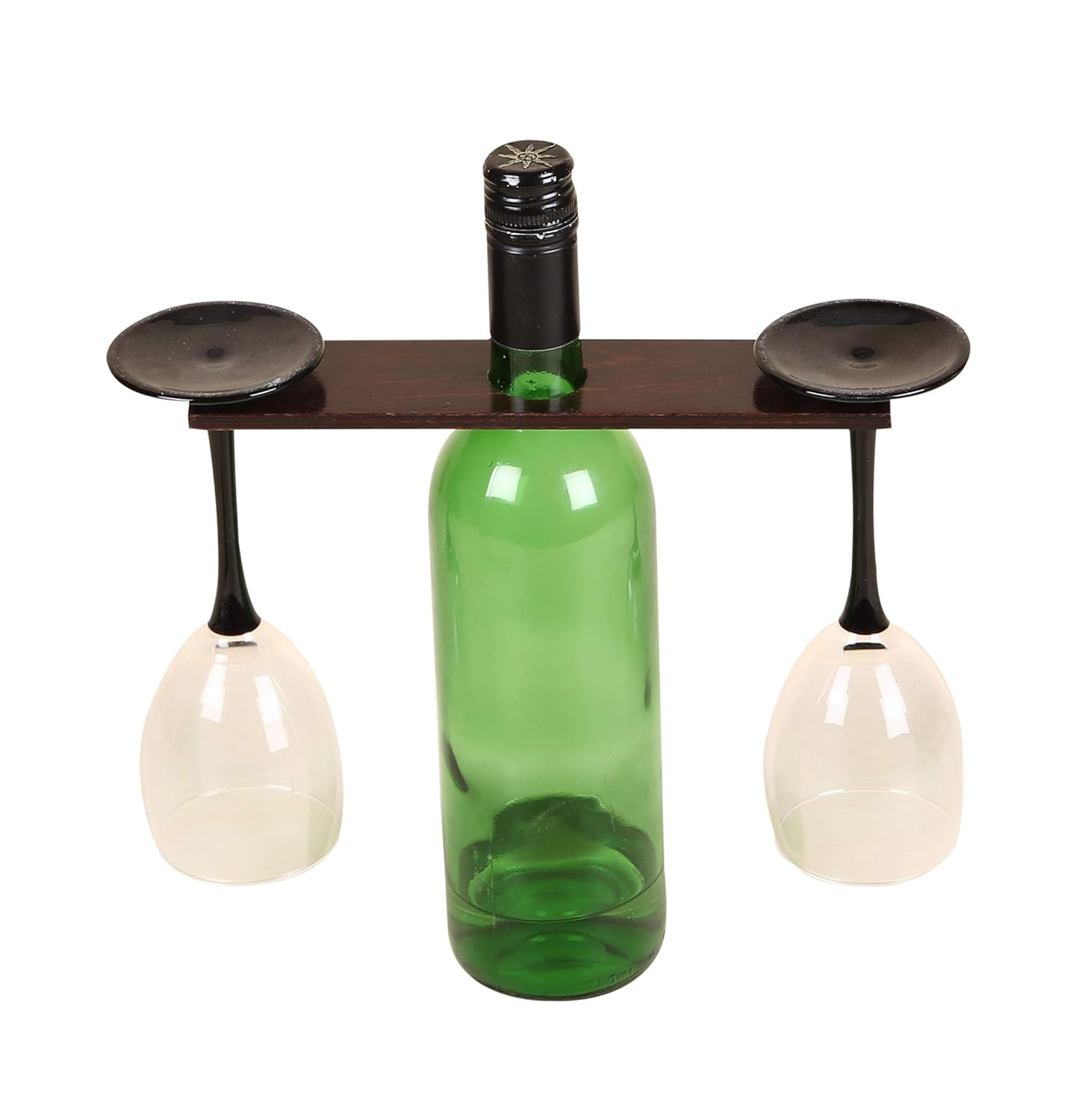 Lycka Brichwood Table Top Wine Bottle And Glass Holder With
