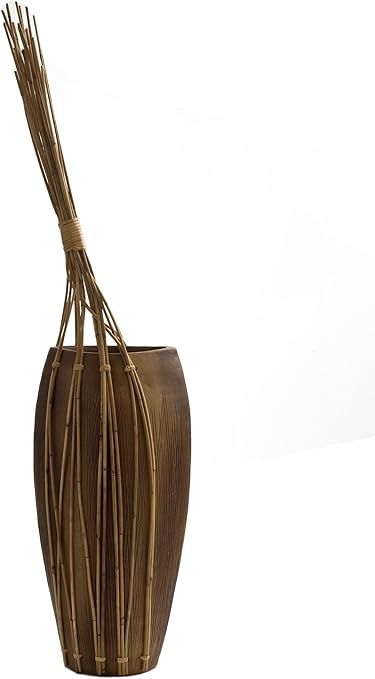 Ceramic Vase Brown With Bamboo Sticks Large Decorative Vase